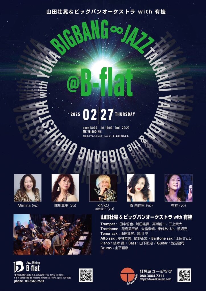 [2025.2.27] 山田壮晃&ビッグバンオーケストラ with 有桂 BIGBANG∞JAZZ @ B-flat 今年も早速ビッグバンオーケストラがゴージャスなサウンドを繰り出す!!華やかなシンガー達による歌声とのハーモニーをお聴きあれ! TITLEBIGBANG∞JAZZ @ B-flatDATE &...