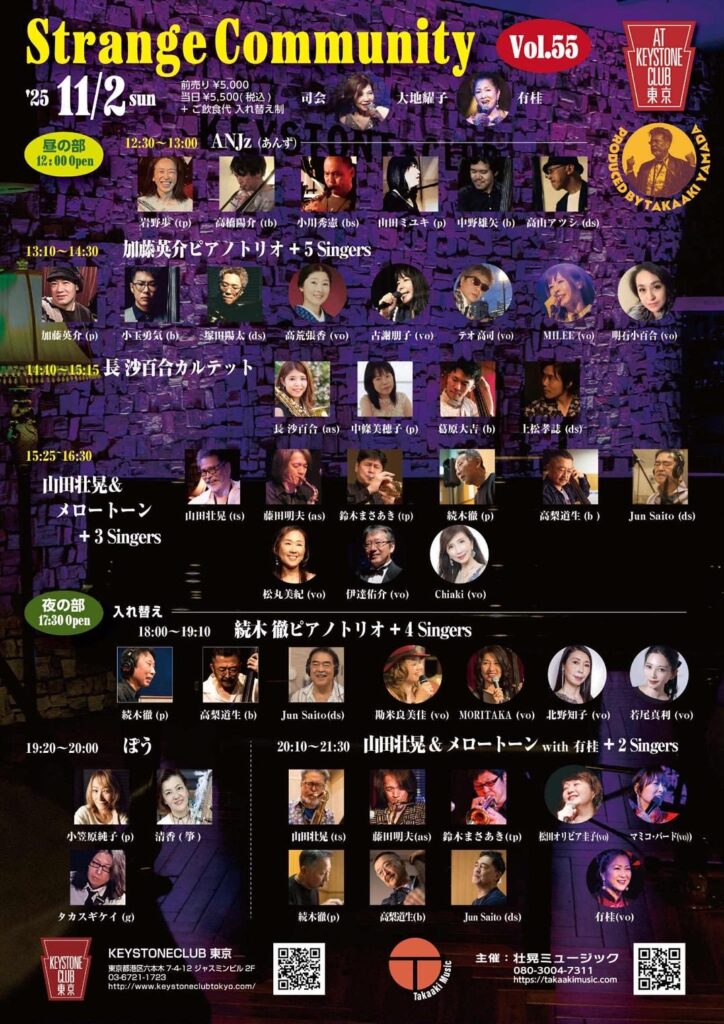 [2025.11.2] Strange Community Vol.55 at KEYSTONECLUB 東京 第55回を迎えたStrange Community!聴き馴染み深い珠玉のパフォーマンスと心踊る新しい表現ひしめく音楽の桃源郷をぜひご堪能あれ! TITLEStrange Community Vol.55 at KEYSTONECLUB 東京DATE ...